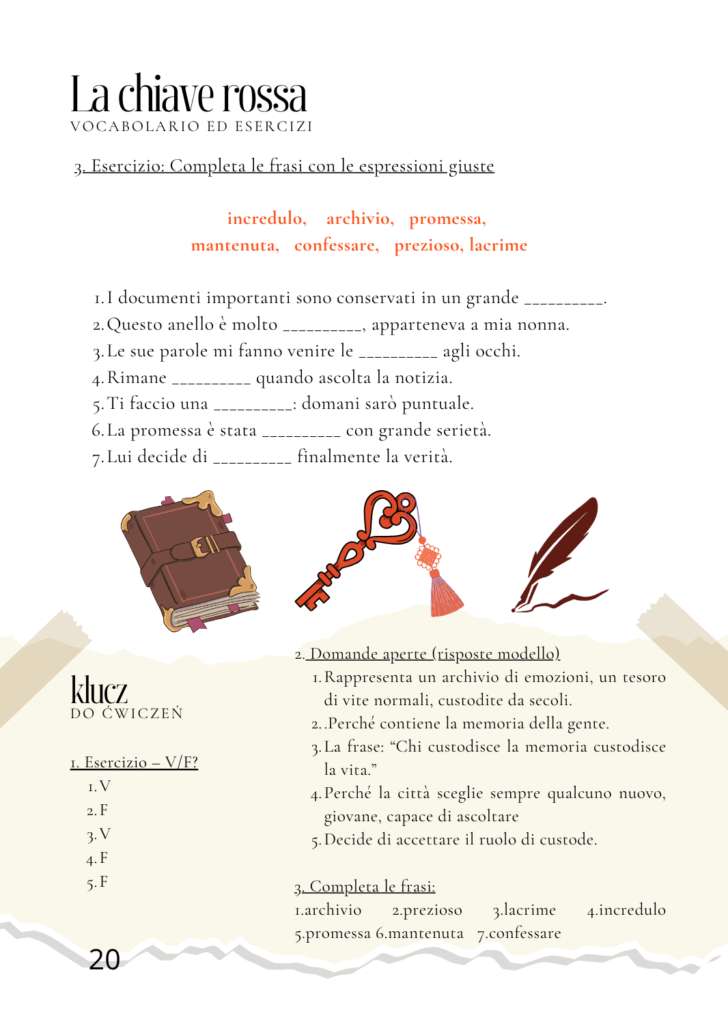 Ćwiczenia językowe do każdego rozdziału – pytania do tekstu, zadania leksykalne i gramatyczne.
